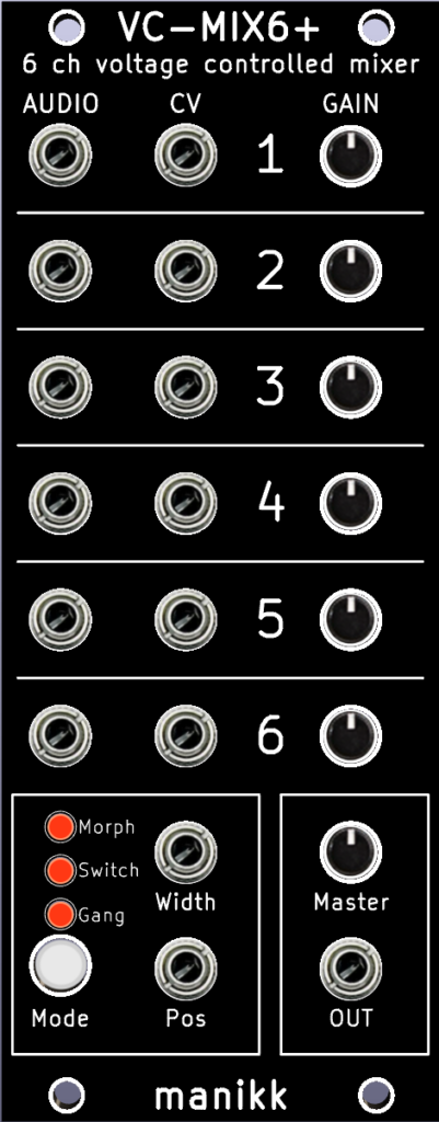 - 6 channel voltage controlled mixer.