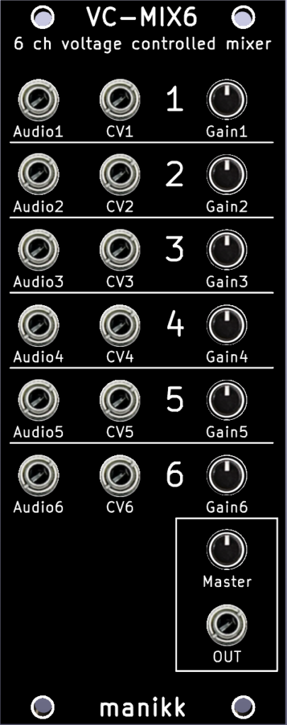 - 6 channel voltage controlled mixer.
